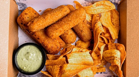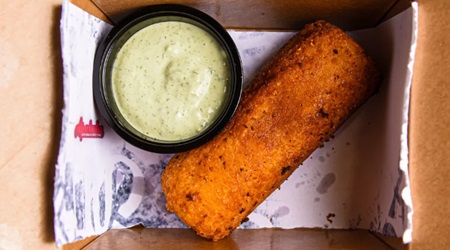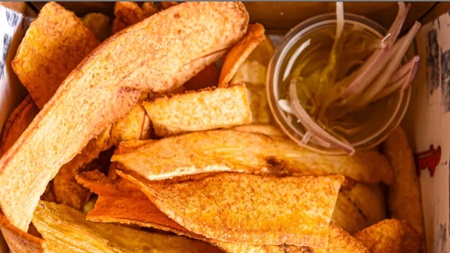 Served Individually. A gourmet Cuban-style assortment of fried delights: stuffed cassava, croquettes, plantain chips, and a variety of sauces.